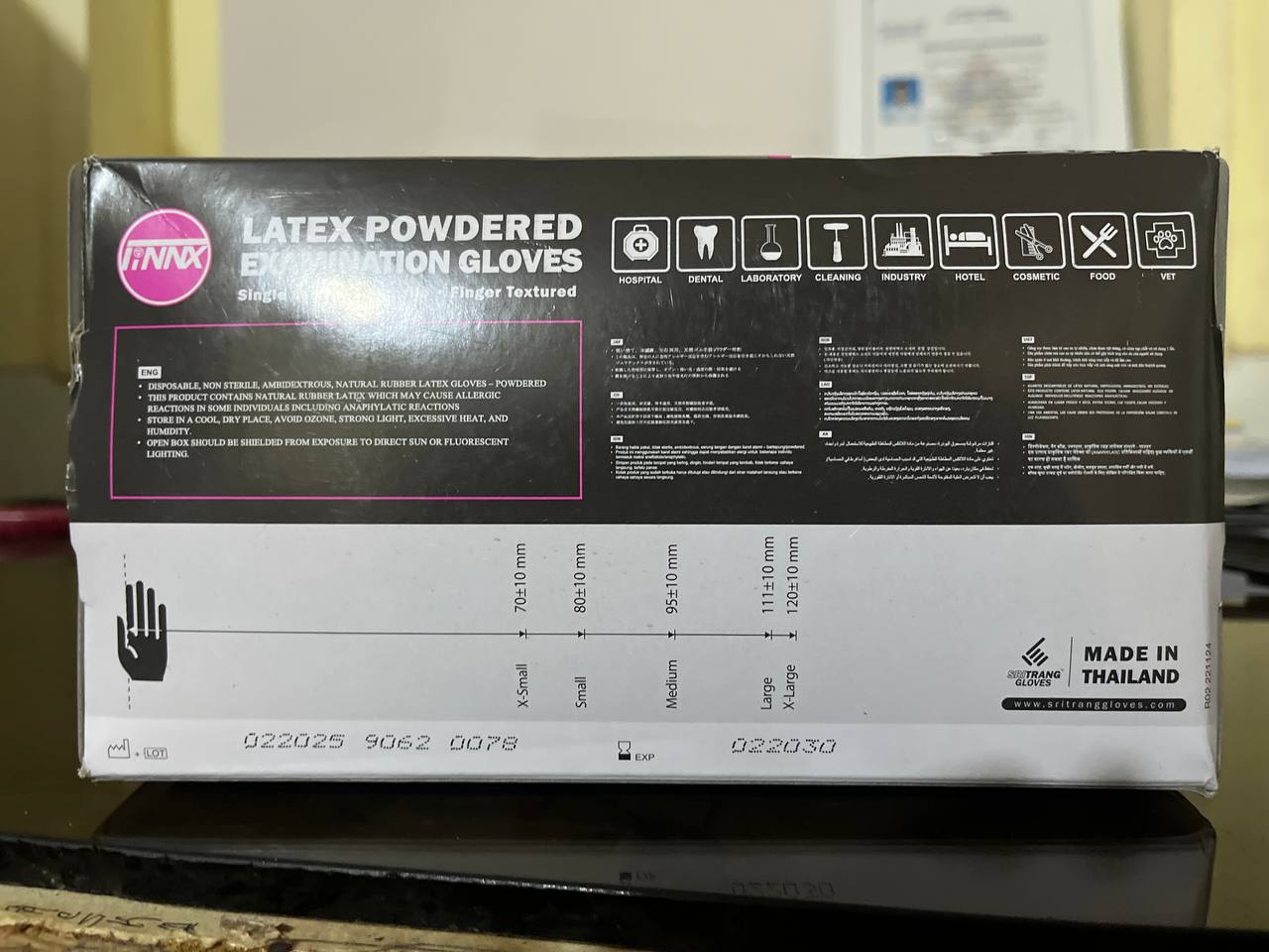 ស្រោមដៃ ម៉ាក FinnX by Sri Trang ប្រភេទមានម្សៅ ពណ៍ស