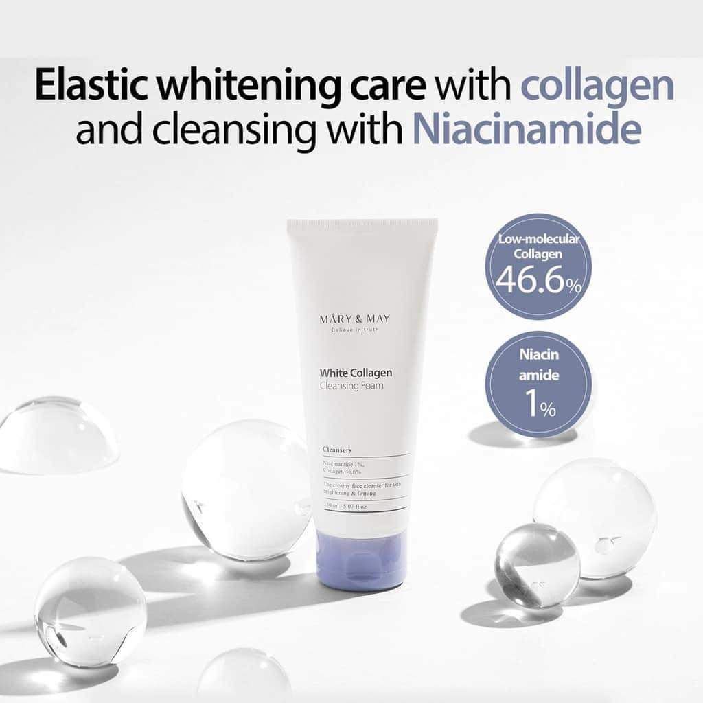 White Collagen Foam សម្រាប់ស្បែកមុខខ្មៅស្រអាប់ ស្ងួត រន្ធញេីសធំ ជួយសំអាតធូលីកង្វក់បានស្អាតល្អជាពិសេសមានខូឡាជែនជួយស្បែកសភ្លឺថ្លា