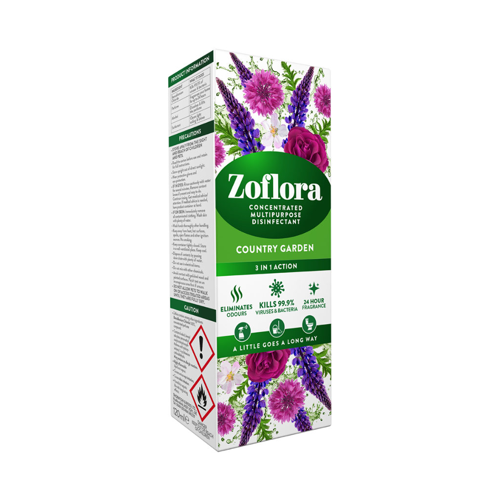 Zoflora Country Garden 120 ml. នាំសំលាប់មេរោគពហុគោលបំណង រូបមន្តផ្សំឡើងដោយក្លិនក្រអូបជាប់បានយូរ ផលិតផលដែលប្រជាជនអង់គ្លេសជ្រើសរើសប្រើប្រាស់និងជឿជាក់ជាមួយការលក់លេខ 1 នៅក្នុងប្រទេសអង់គ្លេស យើងបានជួយប្រជាជនអង់គ្លេសកម្ចាត់មេរោគអស់រយៈពេលជិត 100 ឆ្នាំមកហើយ យើងមកជាមួយក្លិនក្រអូបពិសេស បង្កើតឡើងដោយអ្នកផលិតទឹកអប់ដែលមានជំនាញអាជីព